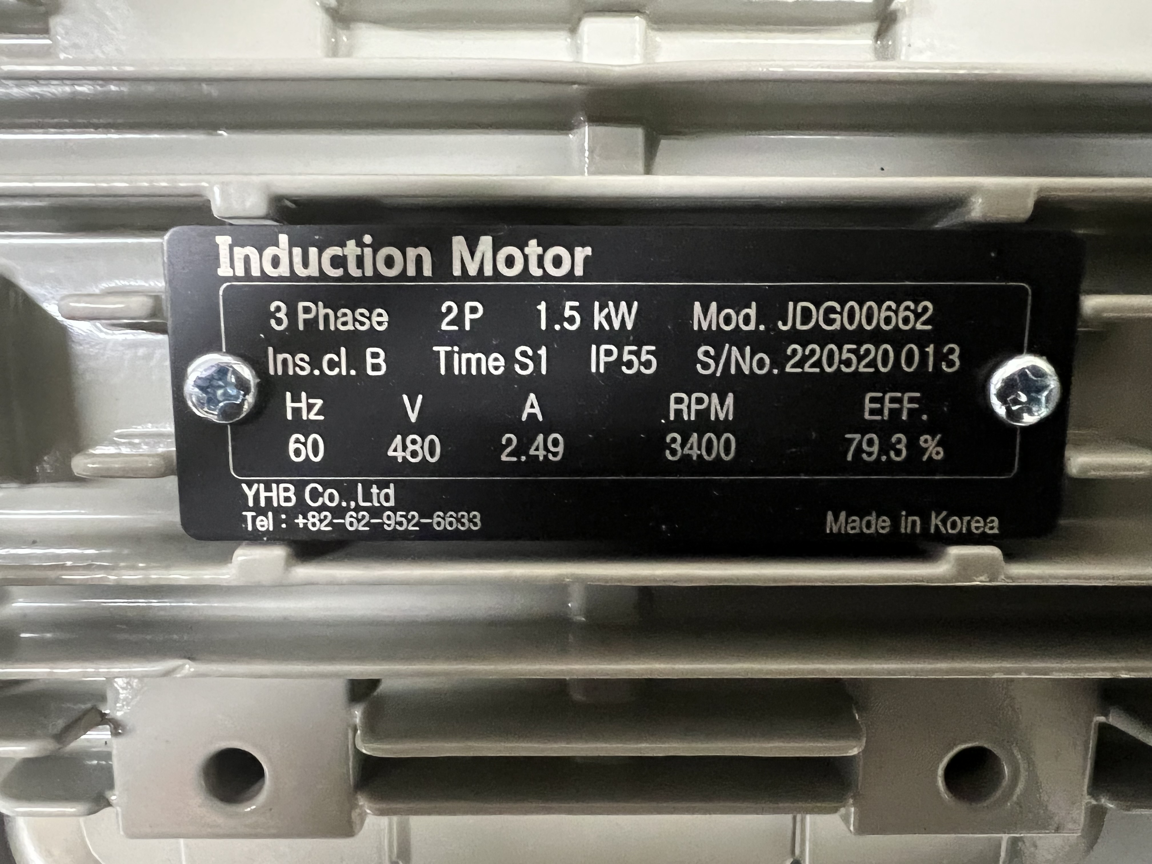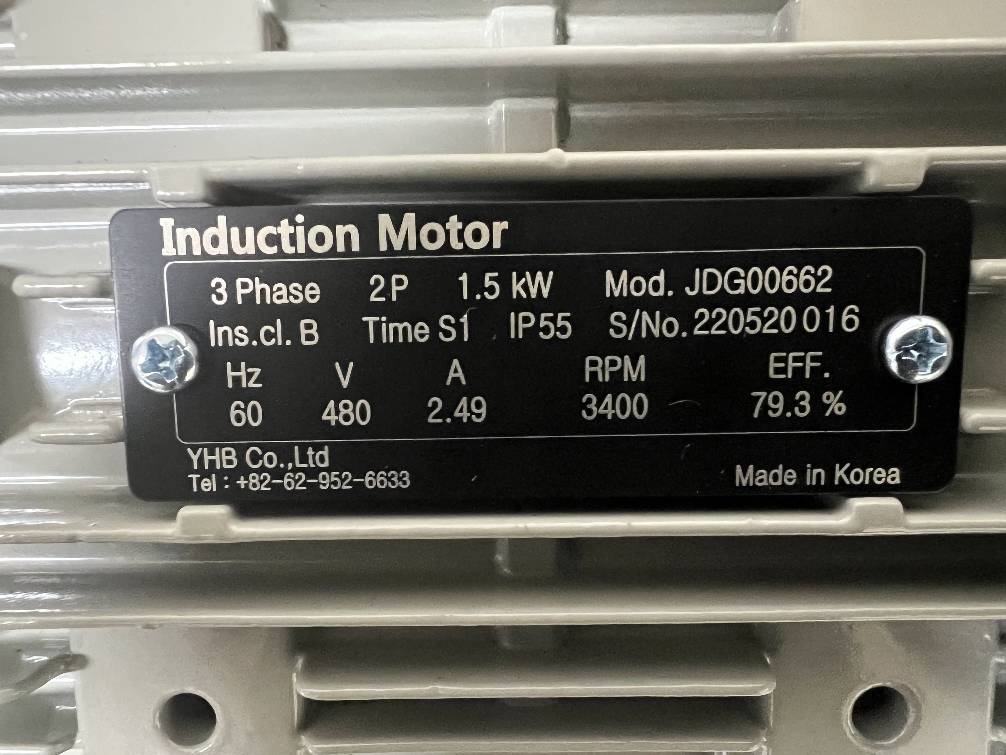 JDG00662 / Induction Motor (1.5kW 2P Ø3 480V 60Hz) / YHB ECO