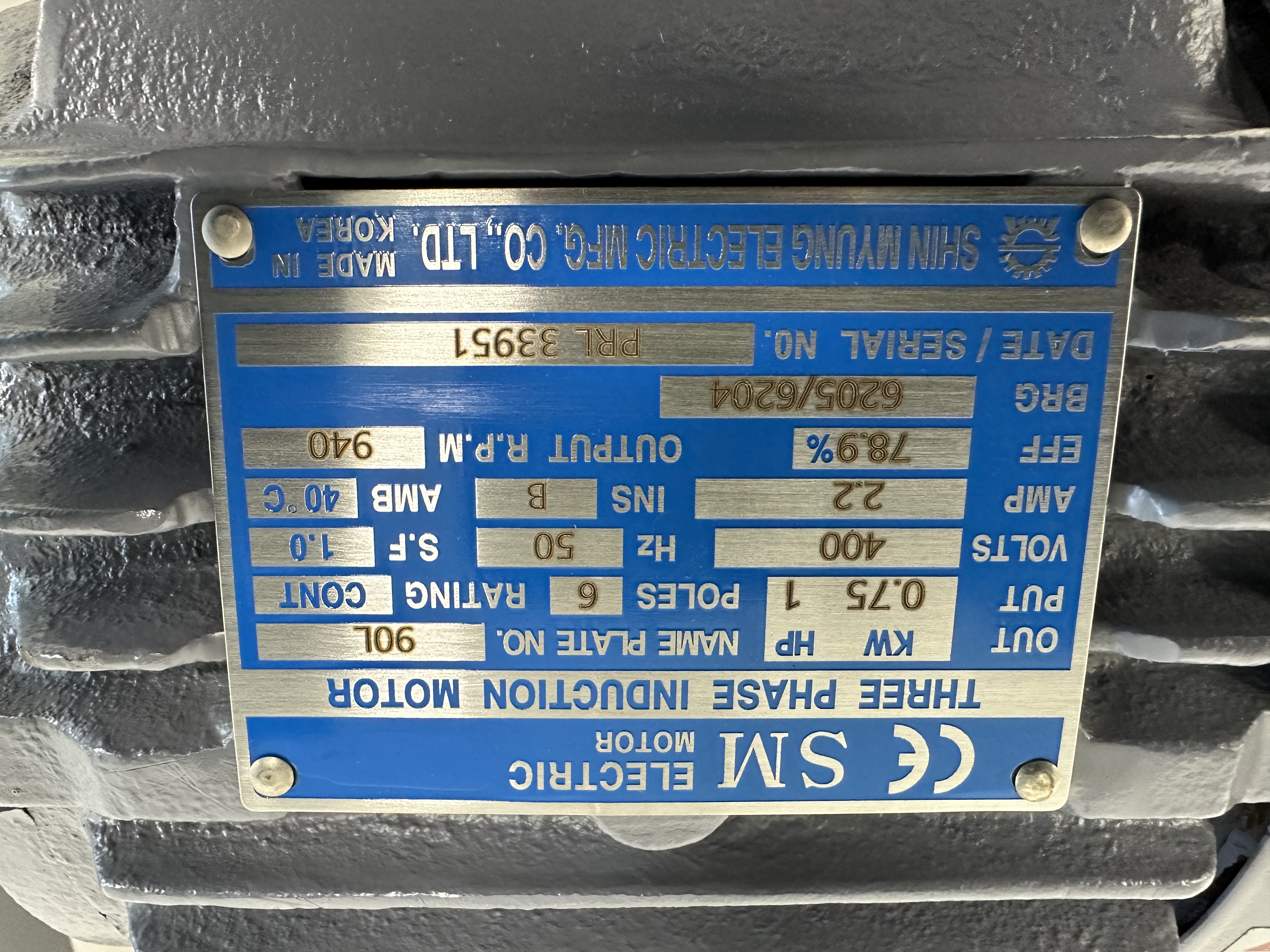 PRL 30983 / 3 Phase Induction Motor / Shinmyung Electric Mfg