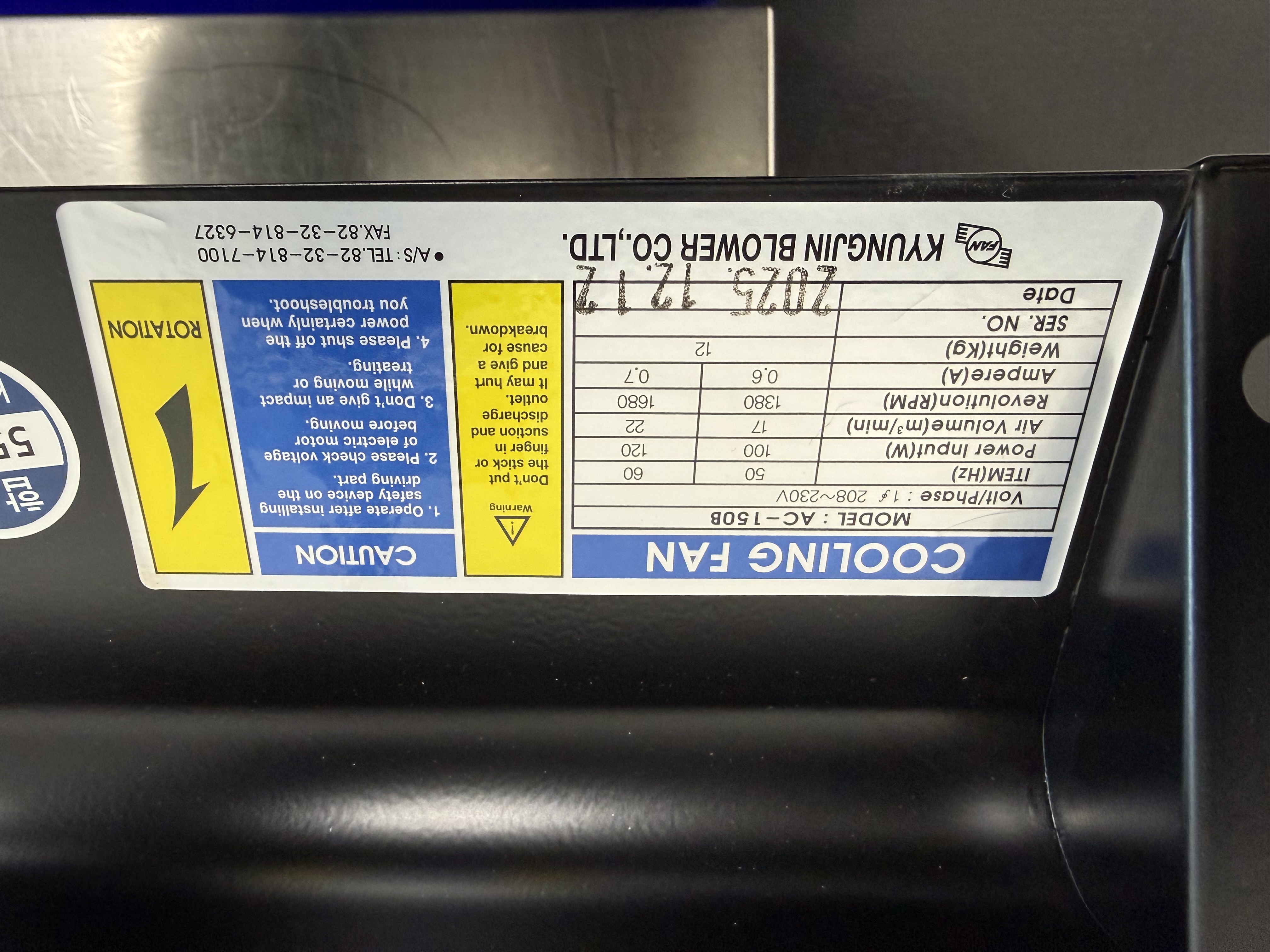 AC-150B-RIGHT / Cooling Fan / KYUNG JIN BLOWER