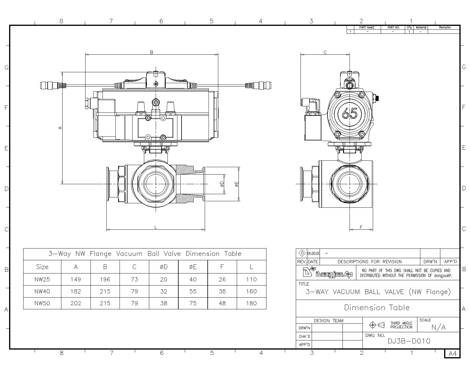 Drawing-DONGJOO AP-3-Way Vacuum Ball Valve-AP3B