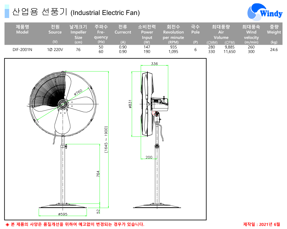 도면-동건공업-스탠드형 선풍기-DIF-6000