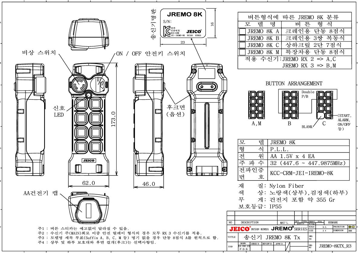 도면-제이코-산업용 무선 리모컨-JREMO 8K